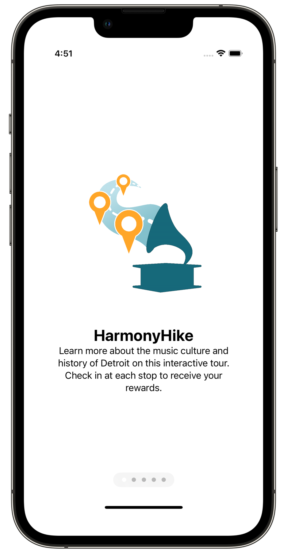Onboarding screen for Harmony Hike AR app.