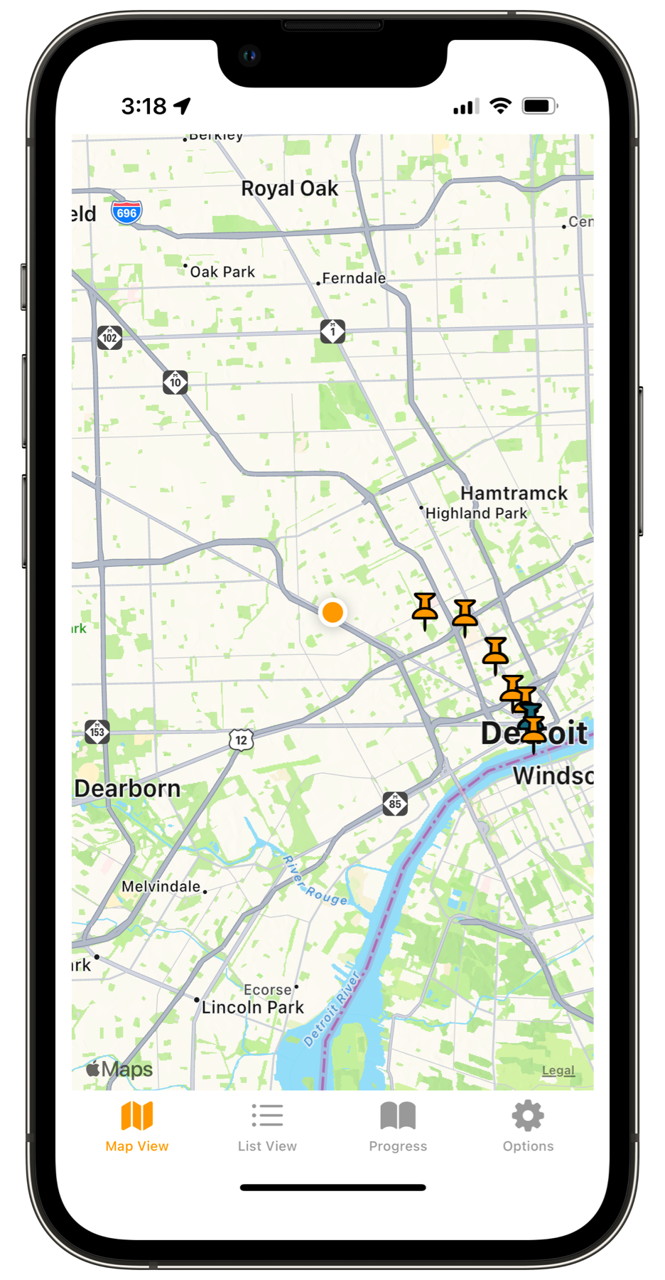 Harmony Hike map of venues view.
